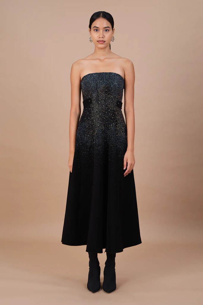 For the simple and classic part, there were 1960s dresses and jackets of mini length and boxy shape; 1990s strapless column gowns — the kind once worn by supermodels and celebrities across glossy pages, right before the decade got wasted; and 1980s voluminous coats with wide shoulders, far too cool to abandon in the cloakroom — heat be damned. Mid-calf corset dresses could just as easily serve as prom-fantasy pieces in any era.